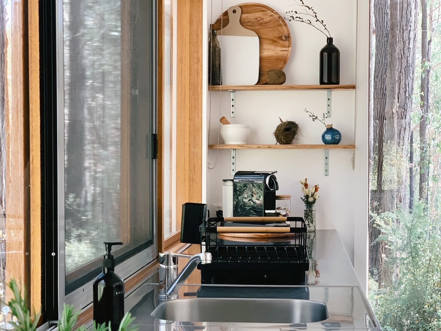 Our deep soaking tub in the bathroom will be a highlight of your stay. Open the bifold windows & let in the sights & sounds of nature. Bathing in the outdoors without having to go outside! Plush bathrobes and complimentary slippers provided.